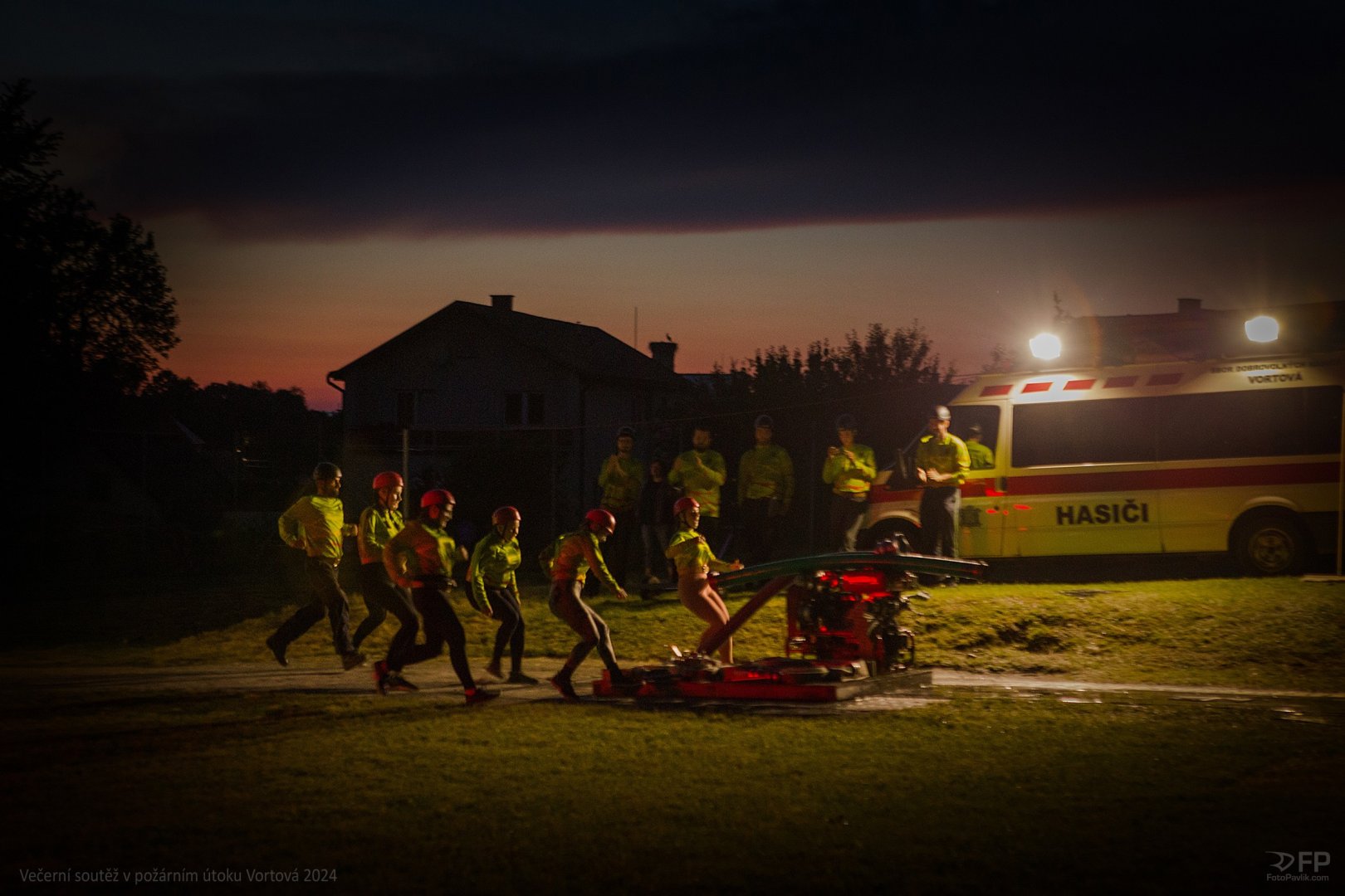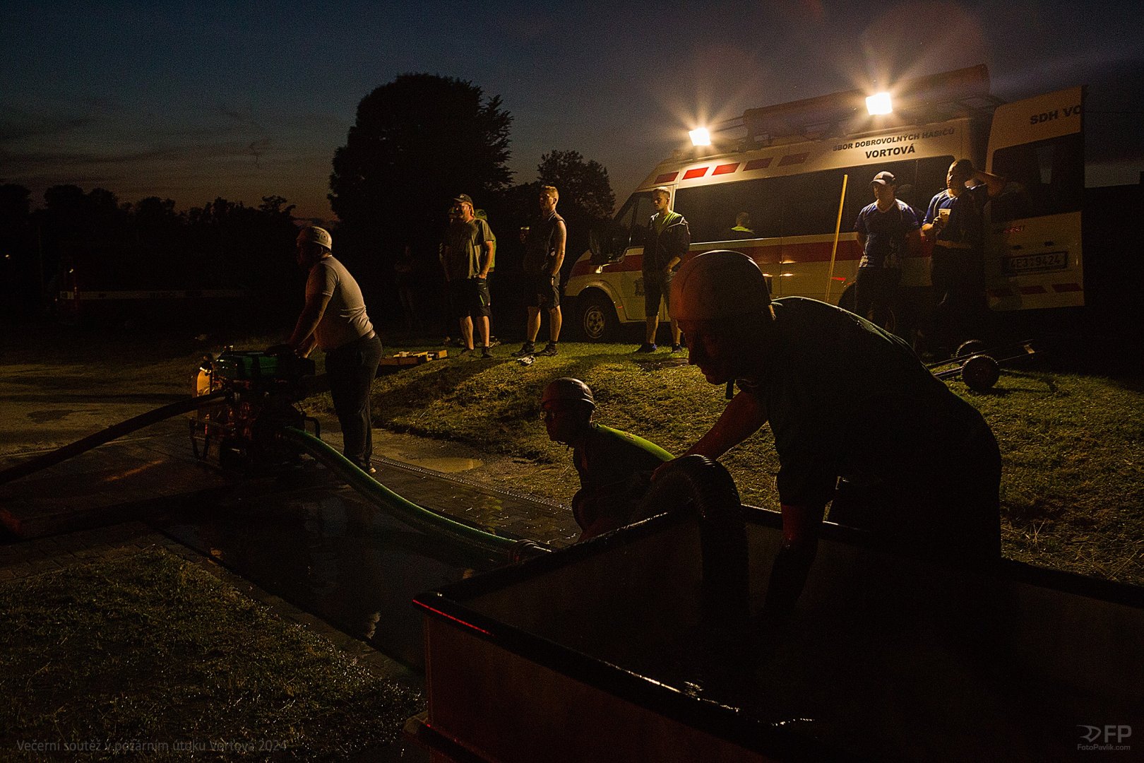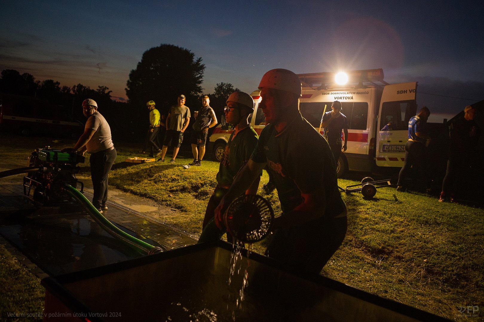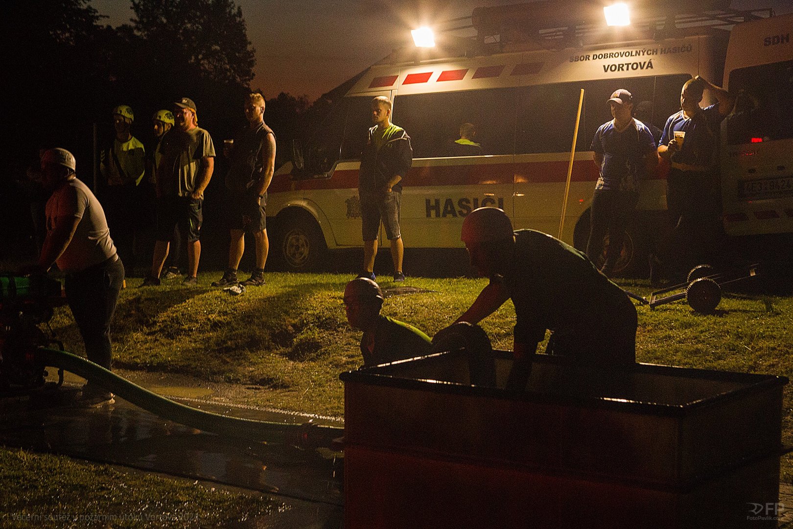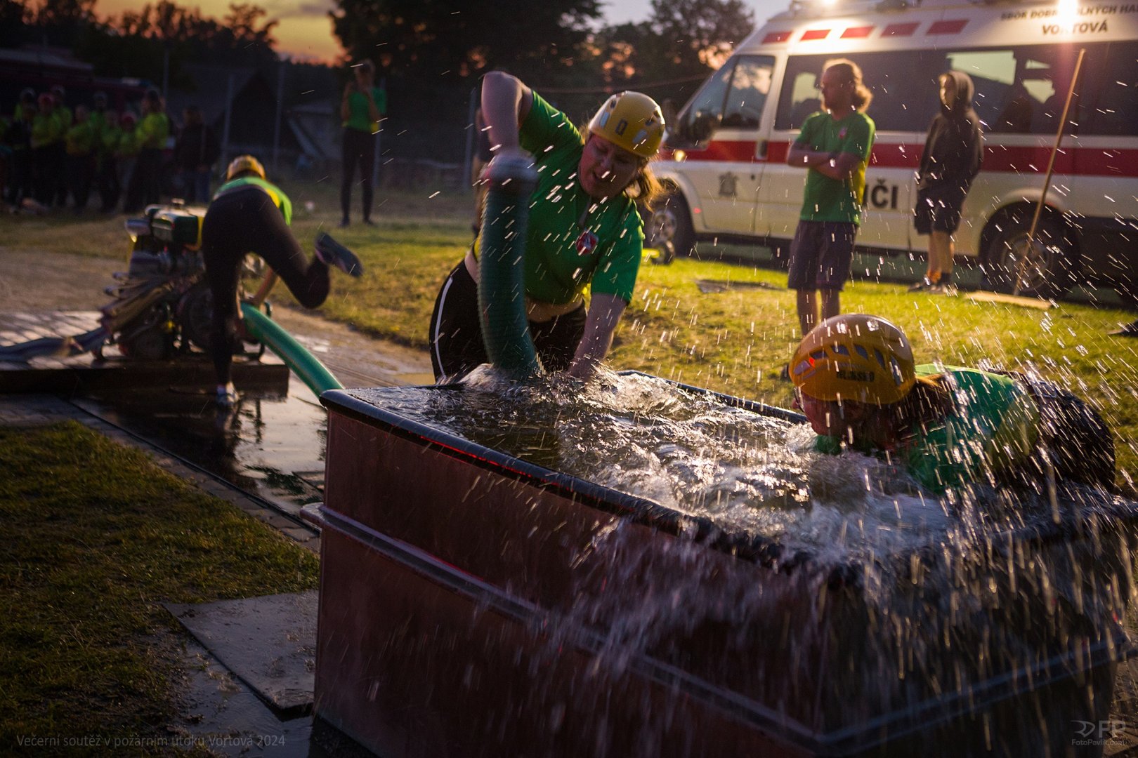 > Večerní soutěž v požárním útoku Vortová 24