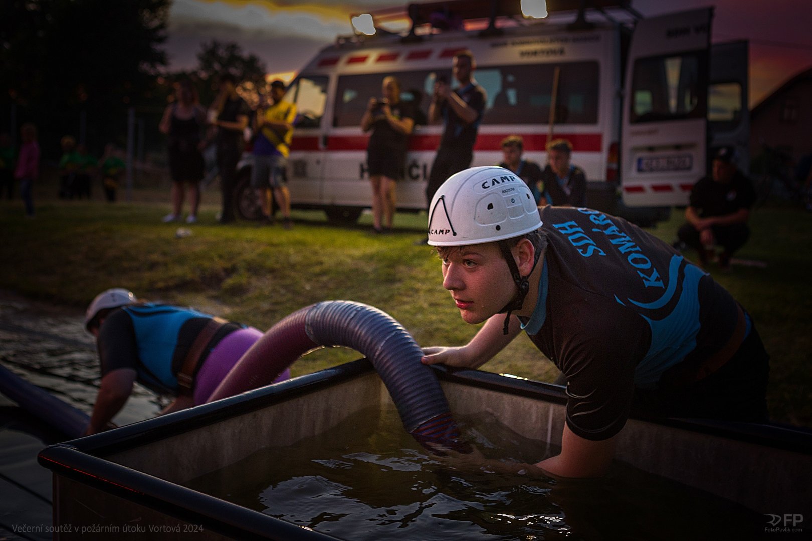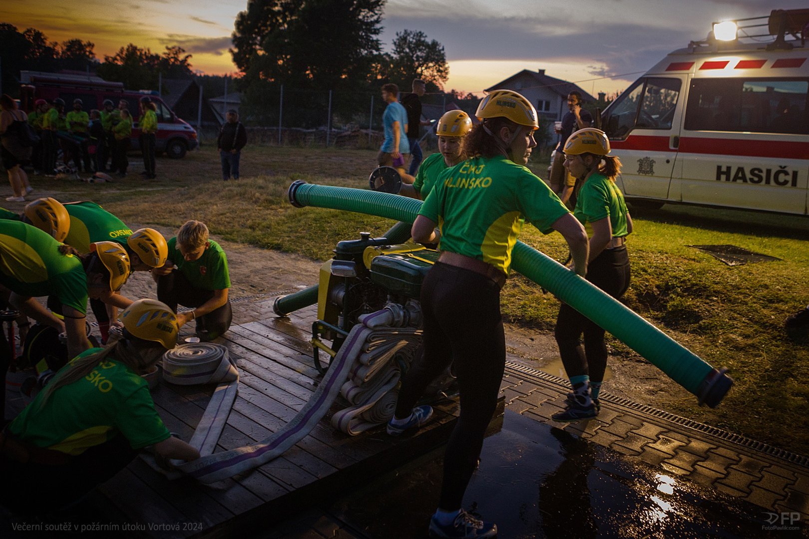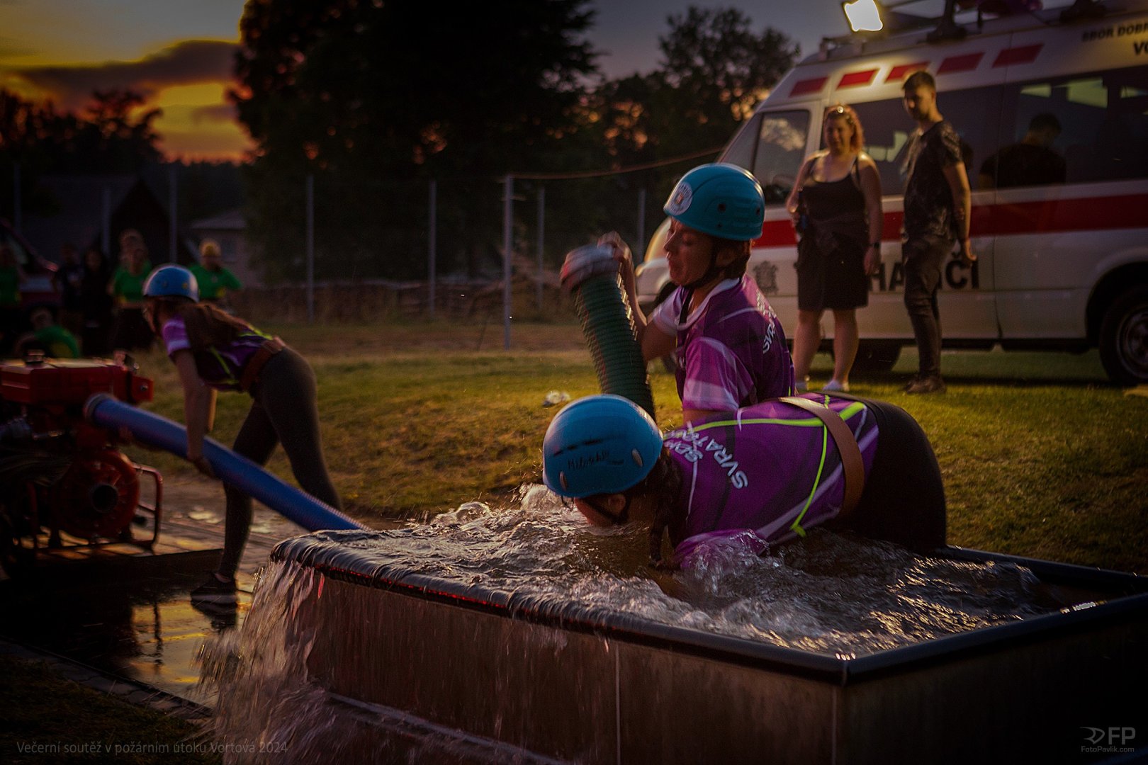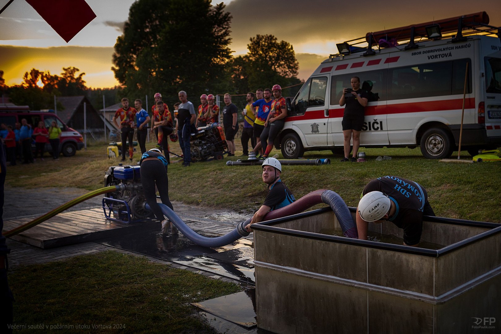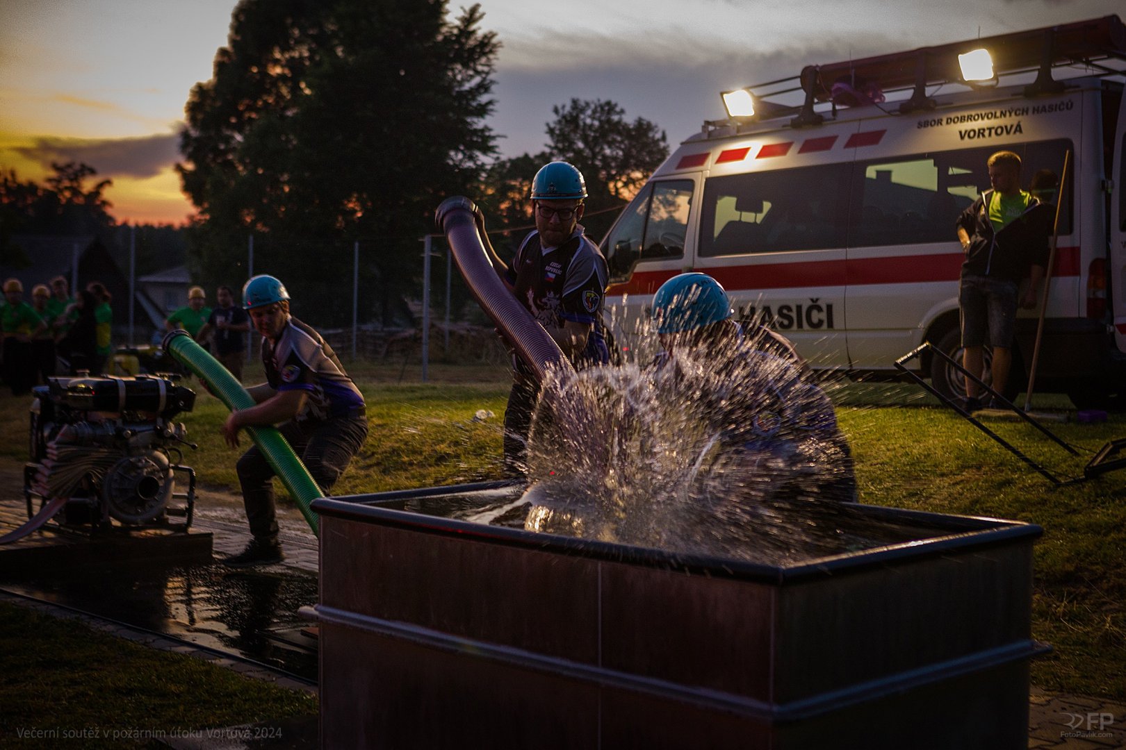 > Večerní soutěž v požárním útoku Vortová 24